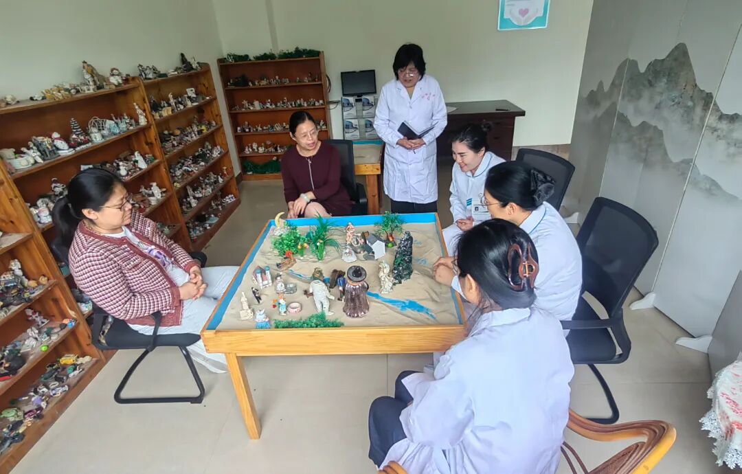 當指尖第一次觸碰溫潤的細沙,一種久違的寧靜感油然而生。仿佛所有喧囂與疲憊,都在這一刻被輕輕撫平。心理治療師說:“這里沒有對錯,沒有標準,只有你和內心最真實的表達。”大家開始自由挑選沙具,搭建屬于自己的世界。