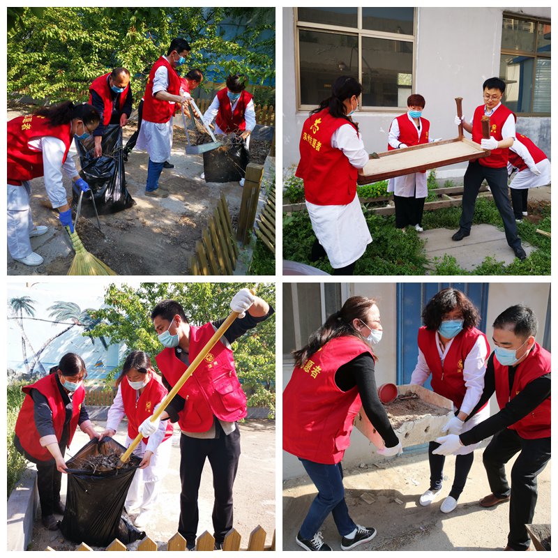 廣大干部職工拿著掃帚、笤帚、鐵鍬等清潔工具,清掃院區路面、撿拾綠化帶內垃圾、清除廢舊物品及雜草、清理衛生死角,大家充分發揚不怕苦、不怕累的勞動精神,干勁十足,齊心協力,院內呈現出一派熱火朝天的勞動場面。
