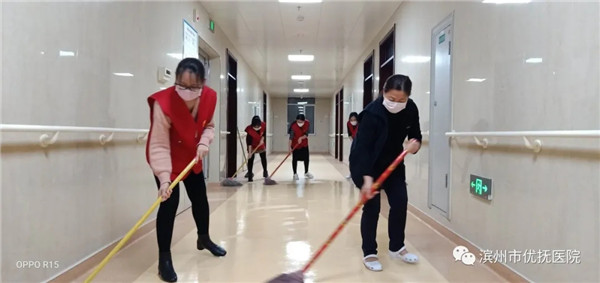 2月24日起,醫院實施全封閉管理,102名醫護人員積極應戰,嚴防死守,嚴密管控,確保110名精神障礙住院患者和33名入住老人不被感染。針對封閉期間后勤人員緊張問題,志愿者服務隊積極開展志愿服務活動,每天派出多名志愿者開展院區、宿舍、食堂衛生掃除、消毒、幫廚送餐等志愿服務,提高了后勤保障效率。