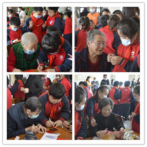 為表達(dá)對(duì)養(yǎng)護(hù)中心爺爺奶奶們的關(guān)心,孩子們也帶來了自己的“禮物”,陪爺爺奶奶剪紙,給爺爺奶奶們表演節(jié)目,活動(dòng)現(xiàn)場(chǎng),老少合作,其樂融融。