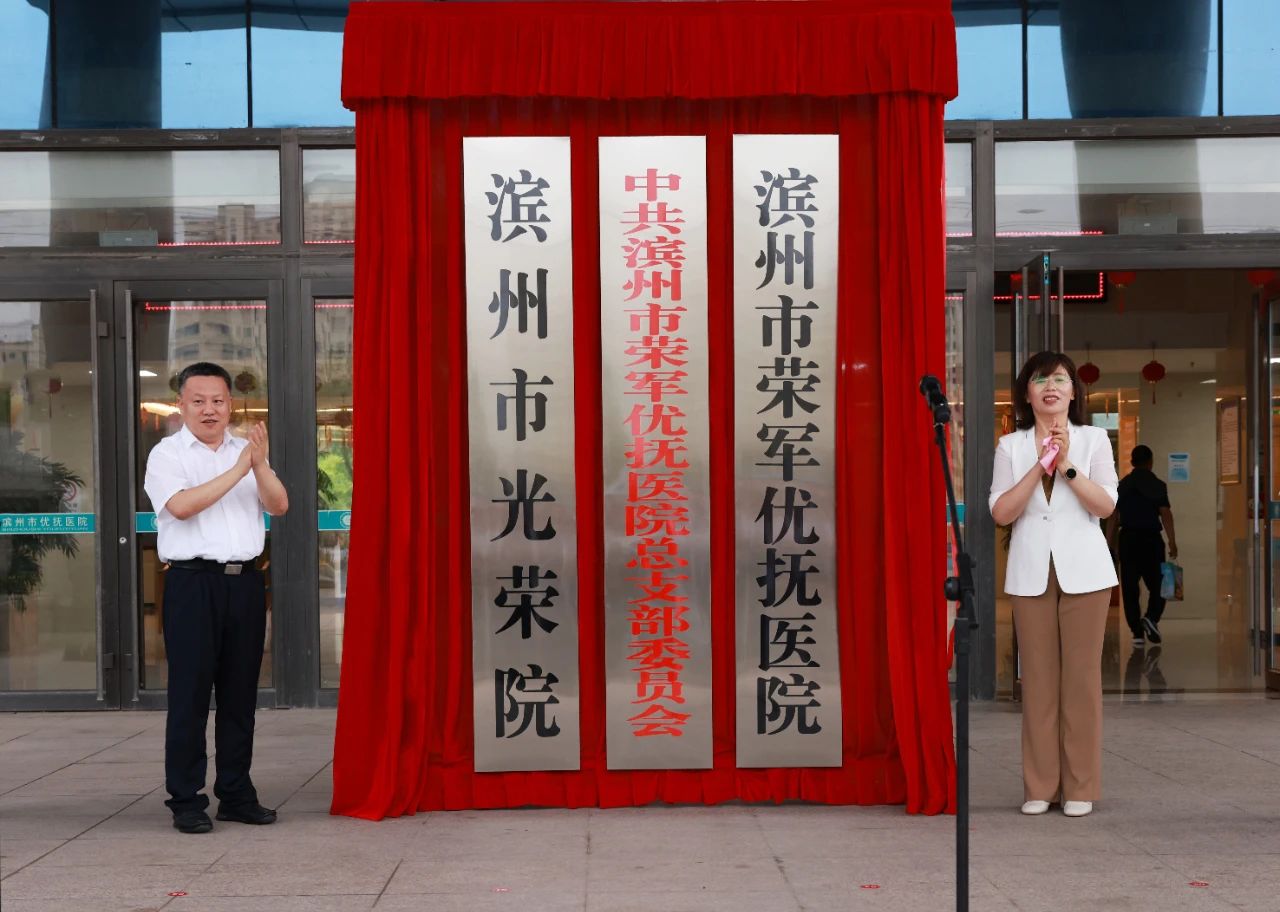 6月19日,濱州市優撫醫院更名暨濱州市光榮院揭牌儀式舉行。濱州市副市長、市公安局黨委書記、局長張慶勇,濱州市退役軍人事務局黨組書記、局長史紅芳,市政府辦公室黨組成員、副主任劉樹洪,市委編辦、市民政局、市財政局、市衛生健康委、市醫療保障局相關負責同志,局屬單位領導,渤海關愛退役軍人基金會代表、醫院班子成員、短期休養優撫對象、醫院各黨支部黨員代表出席活動。