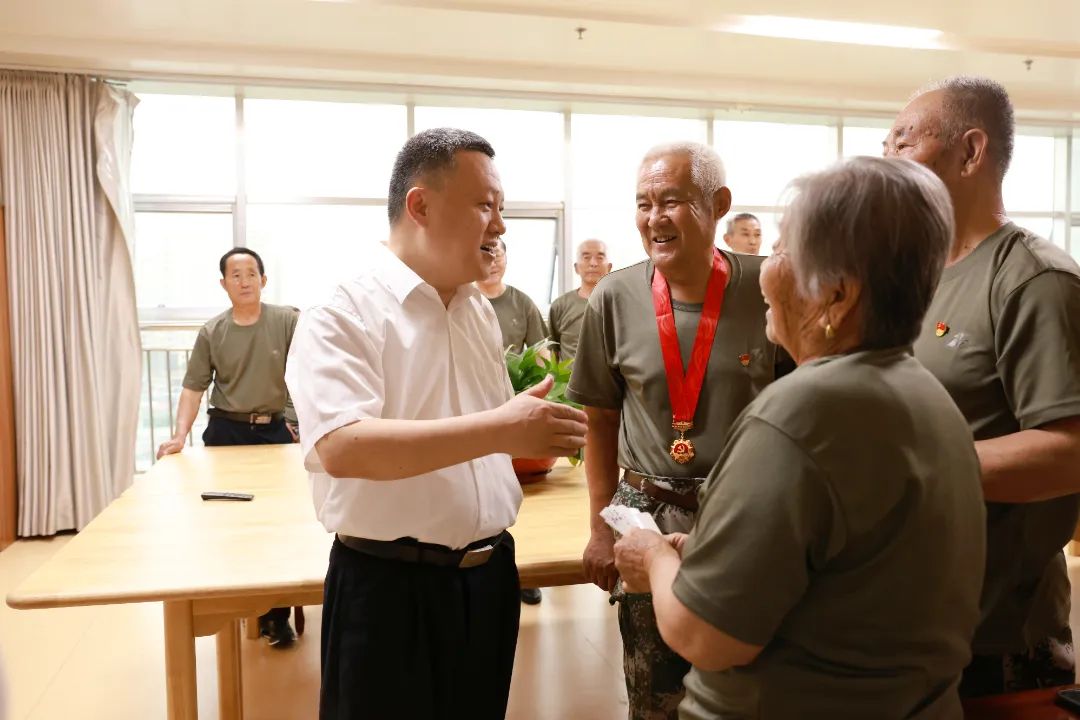 揭牌儀式后,張慶勇一行到療養樓探望慰問了參加濱州市2025年第四批短期休養的優撫對象,與他們親切交流,關切詢問他們的身體狀況和休養感受,聆聽革命老兵講述從軍經歷和參戰故事,感謝他們為國防和軍隊建設作出的貢獻并送上關懷祝福。