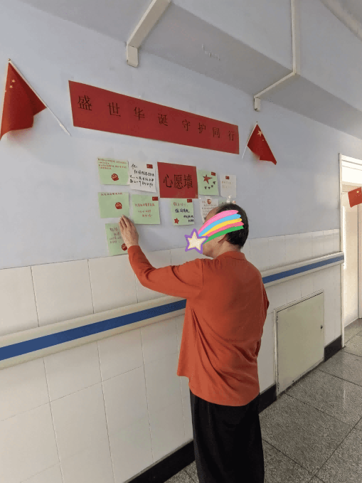 三病區則被醫護人員和患者共同裝點一新,走廊懸掛的國旗與燈籠,打造出一條洋溢著節日喜慶的“紅色通道”;病區一角,溫暖的“心愿墻”悄然設立。患者們認真寫下對家國、對親人、對自己的祝福與心愿,將一張張承載希望的卡片輕輕貼上。字里行間,寄托的是對美好生活的向往,也是對康復之路的堅定信心。